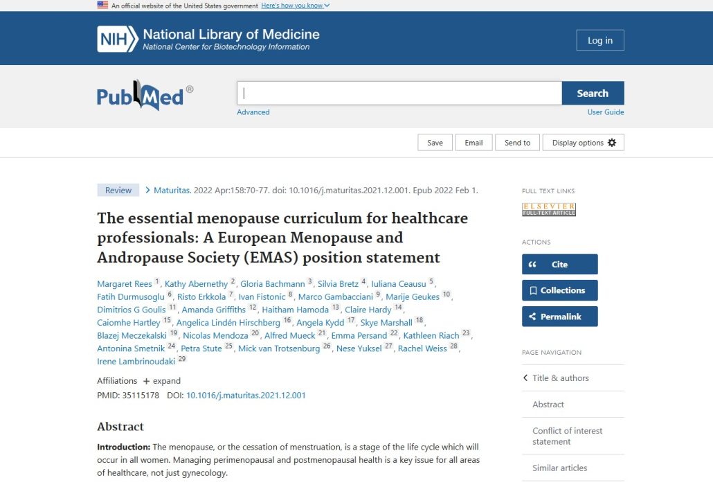 Referência: The essential menopause curriculum for healthcare professionals: An EMAS position statement. Maturitas (2021). DOI: 10.1016/j.maturitas.2021.12.001.